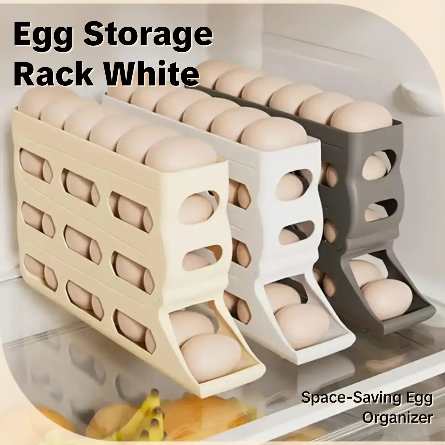 30-egg fridge rack - Automatic rolling fridge egg storage box, space-saving egg dispenser holder, 4-layer fridge egg rack, large-capacity fridge egg storage box (white) Easter gift (DM378-2723