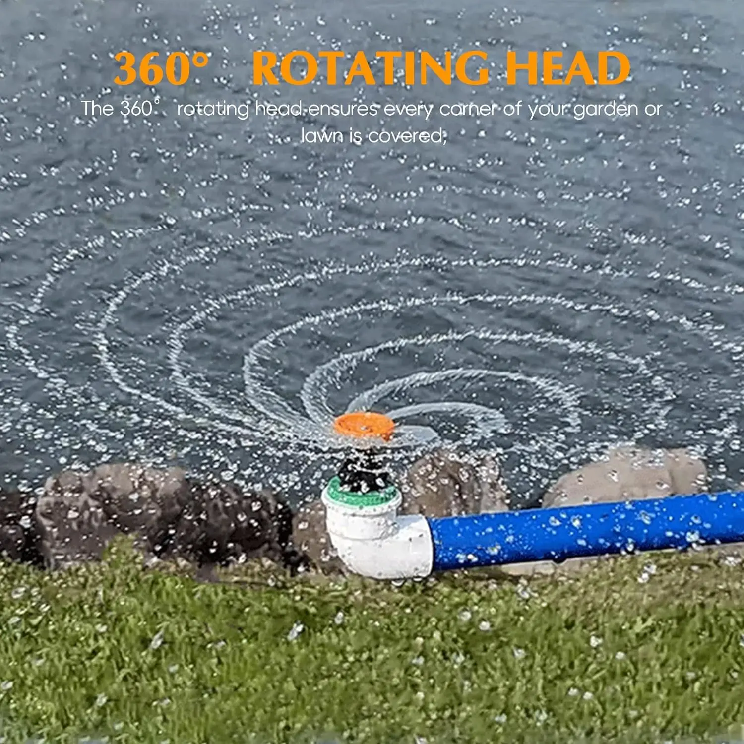 ·360° Rotating Head: The 360° rotating head ensures every corner of your garden or lawn is covered, providing thorough irrigation for healthier growth of plants.