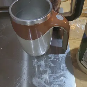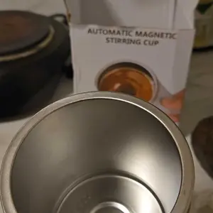 an innovative and convenient kitchen gadget It uses a small, built-in magnetic stirrer at the bottom of the cup to automatically mix your drink Design: stainless steel interior and a plastic outer shell Capacity: These mugs are best for lightly mixed liquids and powders; very thick liquids