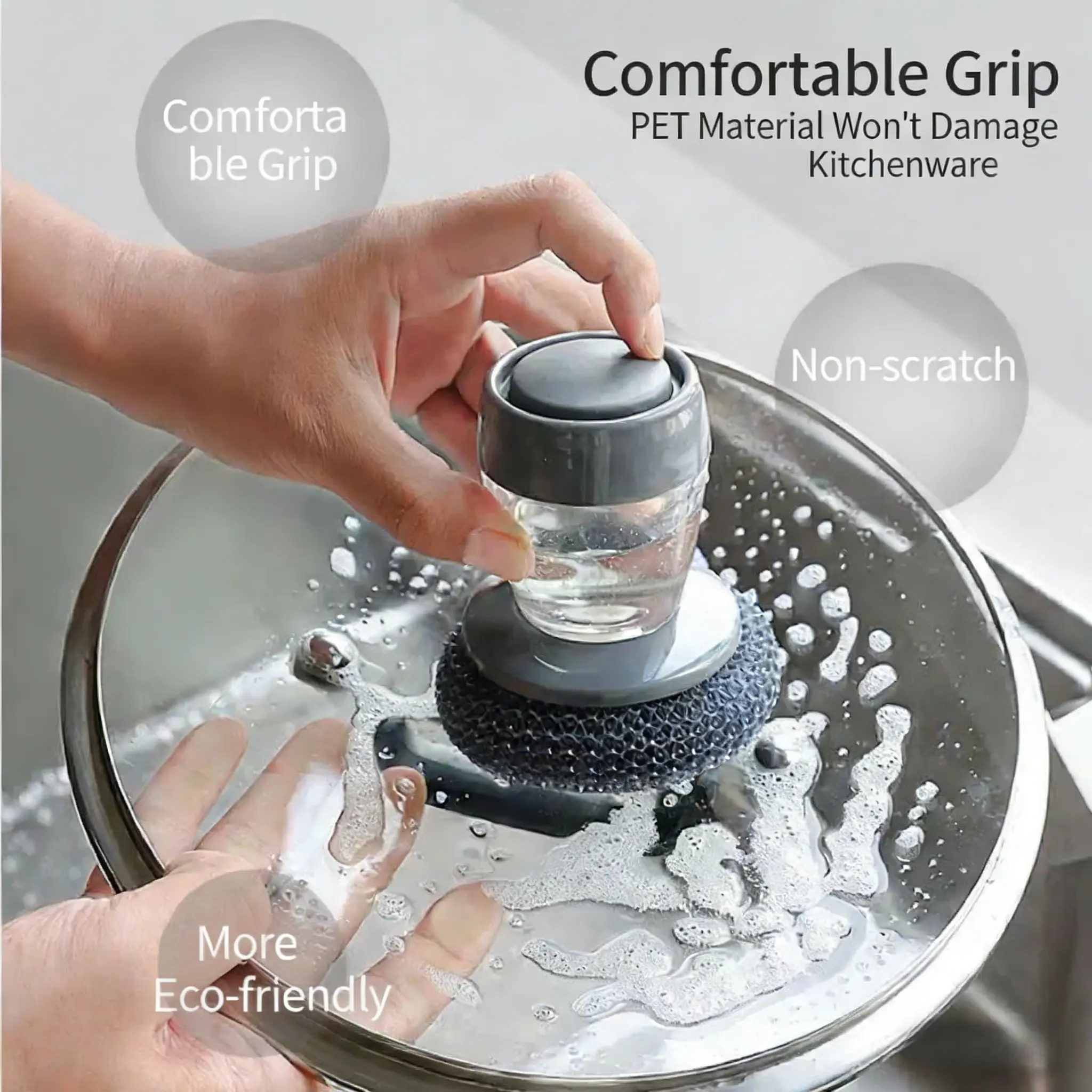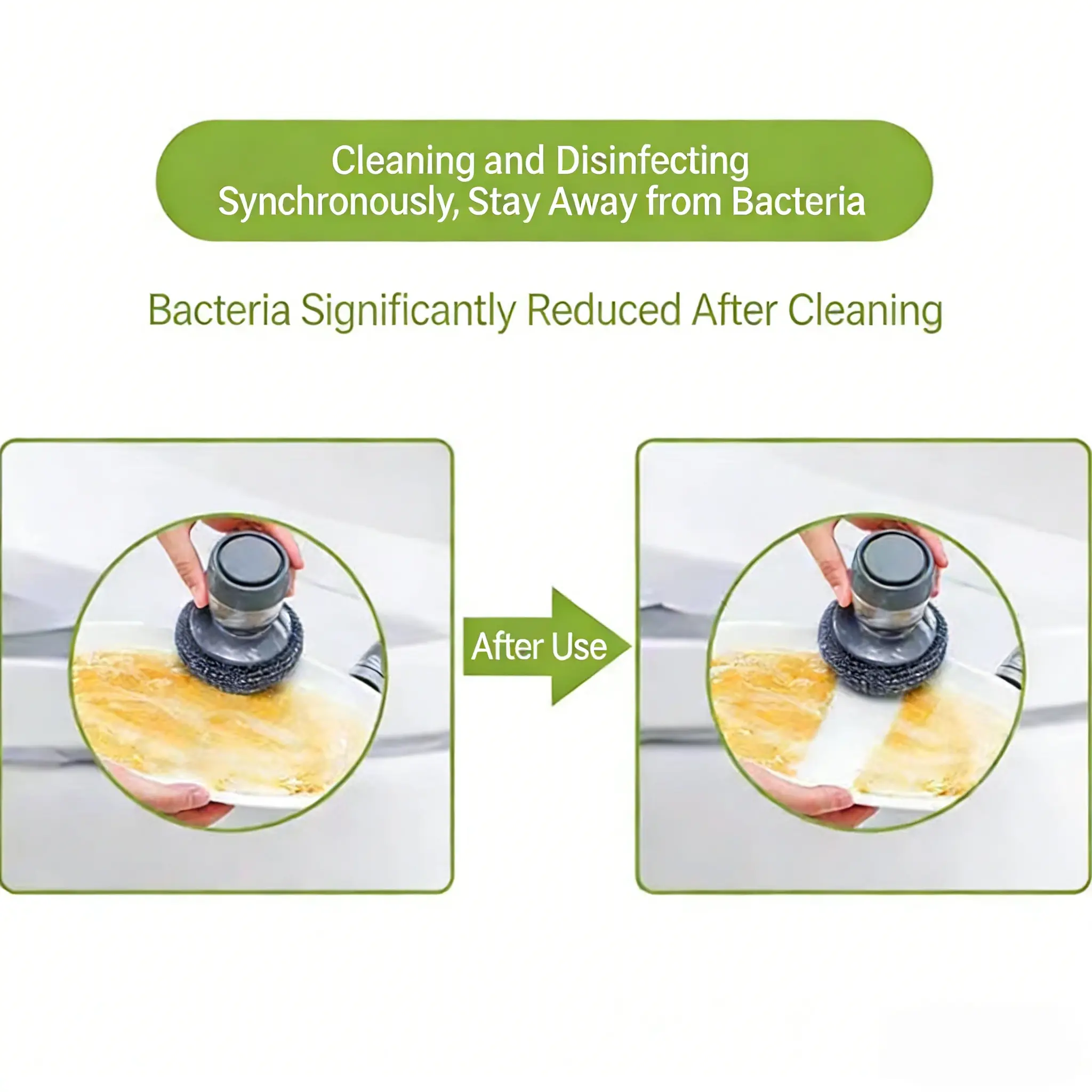 Simply press the top button to release soap directly onto the brush head, helping you clean efficiently without touching detergent or greasy sponges.