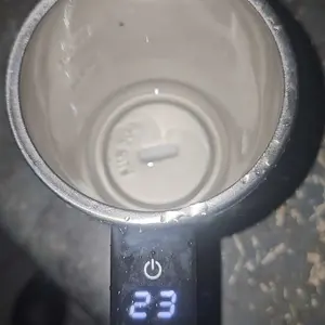 Performance: I'm very impressed with the real light buzz sound when the cup is stirring and the 15 sec count of the stirring. Also the cup reads it's own temperature.