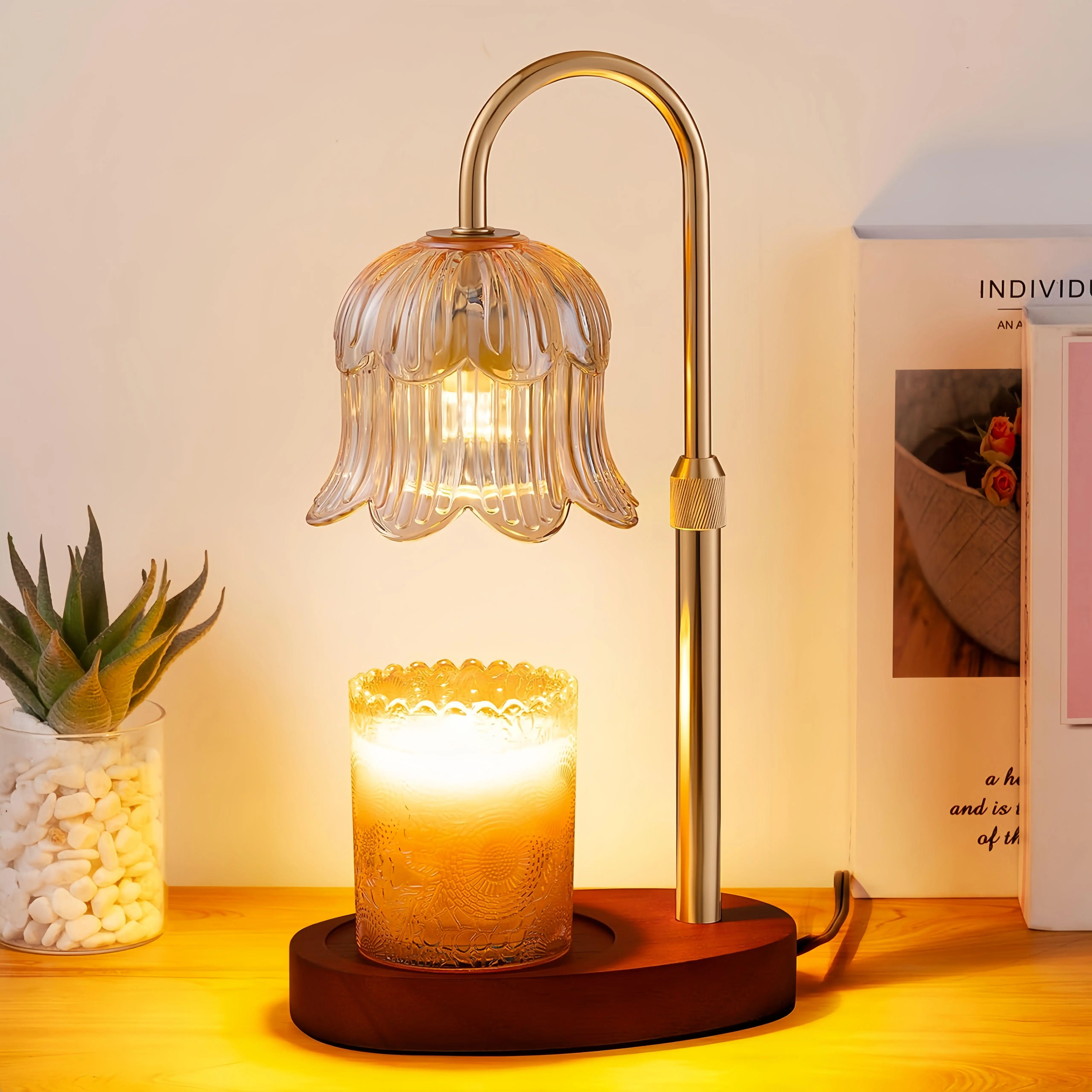Candle Warmer Lamp with Auto Timer Wax Melter Warmer Decor Flower Decoration Green Adjustable Height 4-Level Brightness 8-Hour Sleep Timer