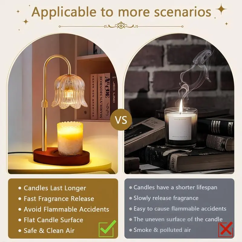 Fashionable Candle Melting Lamp- What? MaterialGreen glass lampshade with a unique flower shape- lighting: Creates a soft and atmospheric light and shadow-- Function: No need to ignite the candle heater-- fragrance: Jar candles emits fragrance when heated- Ambiance: Helps create a comfortable and relaxing atmosphere