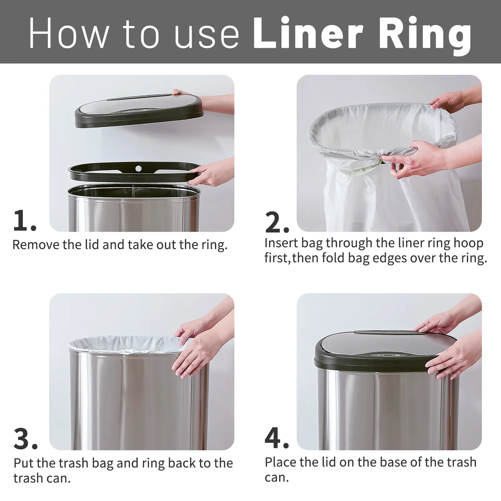 ·Removable ring liner keeps trash bag securely in place