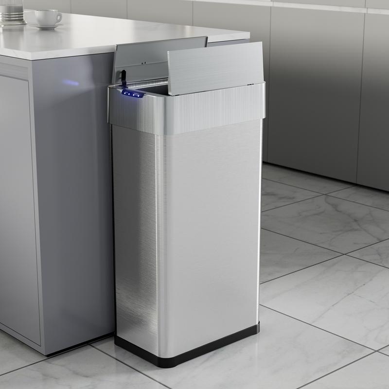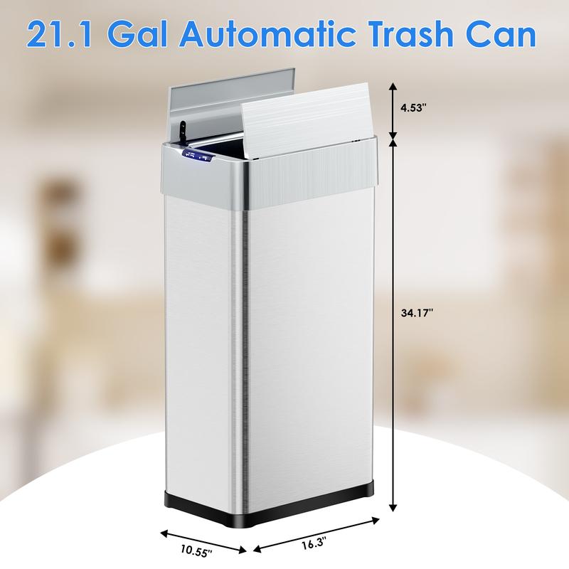 ·21.1 GALLON CAPACITY: Touchless slim garbage bin efficiently utilizes the kitchen space and butterfly lid opens from center, providing ample capacity for most homes. Product Capacity: 16.1''L×10.4''W×33.5''H. (Manual measurement, there may be slight differences)