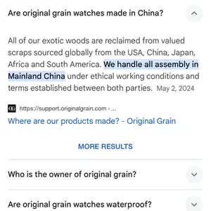 Nice looking watch but horrible customer service on issue resolution. I received the watch on 2/21 and liked the watch. Service had been good in the ordering process. I immediately noticed a small chip and emailed support the next day with images. Initially it seemed as if Original Grain would be responsive to the issue. Responses to emails were slow. One response a day but no resolution. I provided my cell number from the outset to make it easy. They suggested a replacement or a credit against another watch. I indicated I was open to that but didn't receive a response for another day. When prompted the Original Grain support person said they looked at the images and it was just how the wood was. I indicated it was a chip and sent the 3 images with it circled as the support person requested. Basically given no option. Emailed founders@originalgrain.com several times to seek some assistance since in one of their advertisements they provided that email. No response at all to that email after several attempts. Today is a full week from me notifying them of an issue without any potential resolution. I've been in sales and client service leadership for over 30 years and understand that we either reinforce our branded or damage it with how we handle issues. This was a major failure on all counts. It's a shame because the marketing and products look good. Now I have to contact the credit card company to contest the transaction. I'm not a difficult customer so this would have been easy to resolve.