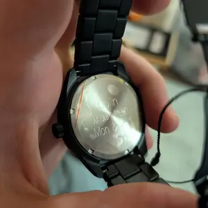 The watch looks amazing at first, bought it for a Valentine's gift hoping to keep as a family heirloom which is why we chose the engraving that we did, however, you guys really need to up your engraving game as it came out incredibly wonky looking which now makes the whole watch seem less special. Word sizes vary from line to line and looks terrible.
