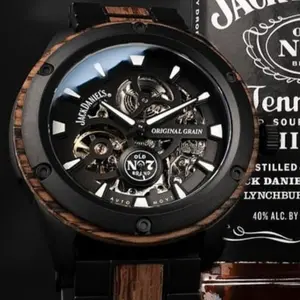Original Grain advertised a collaboration with Jack Daniels. The advertisement on Instagram clearly shows a gorgeous watch with Original Grain's brand name AND Jack Daniels brand name AND the "Old no. 7" logo, all on the face of the watch. The item I received only has Original Grain's brand info on it. This was pretty disappointing, considering what I (and EVERY OTHER CONSUMER drawn in by this ad) saw on Instagram displayed the logos of both companies. It has turned out to be a serious let-down, considering what I payed for this timepiece. I don't appreciate the deception.