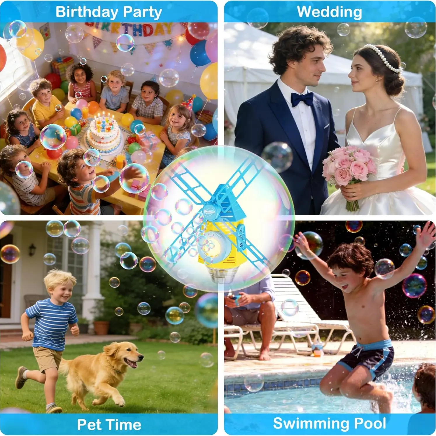 【Height Adjustment】: Easily adjust the height of the bubble machine, catering to children of different ages for optimized use.