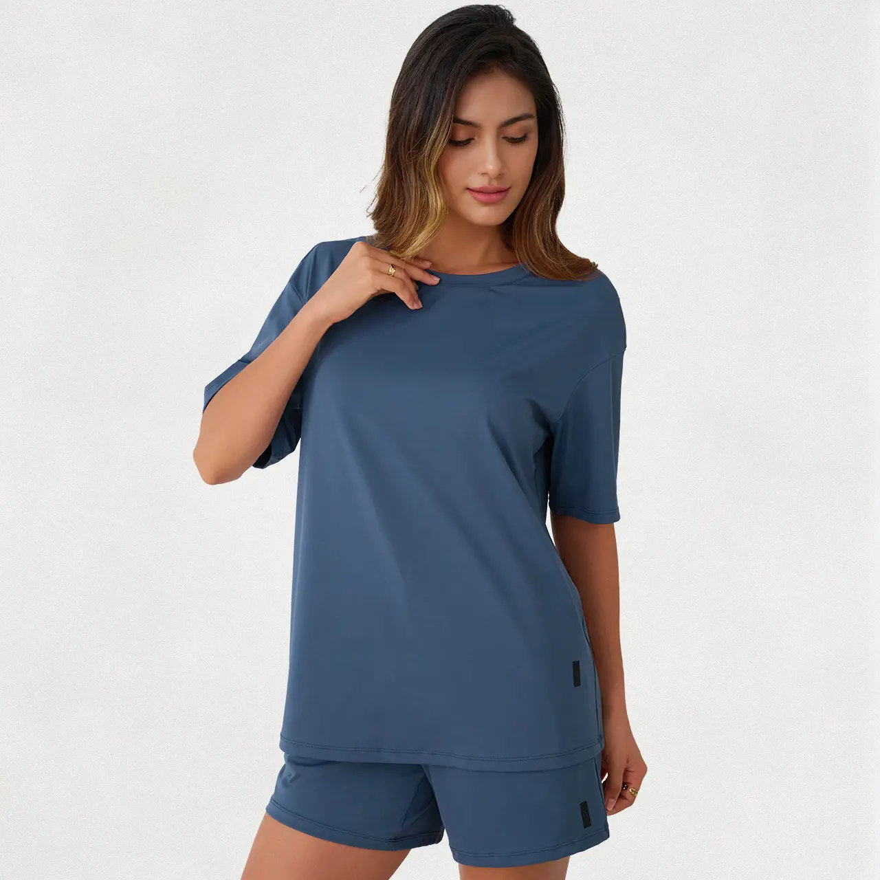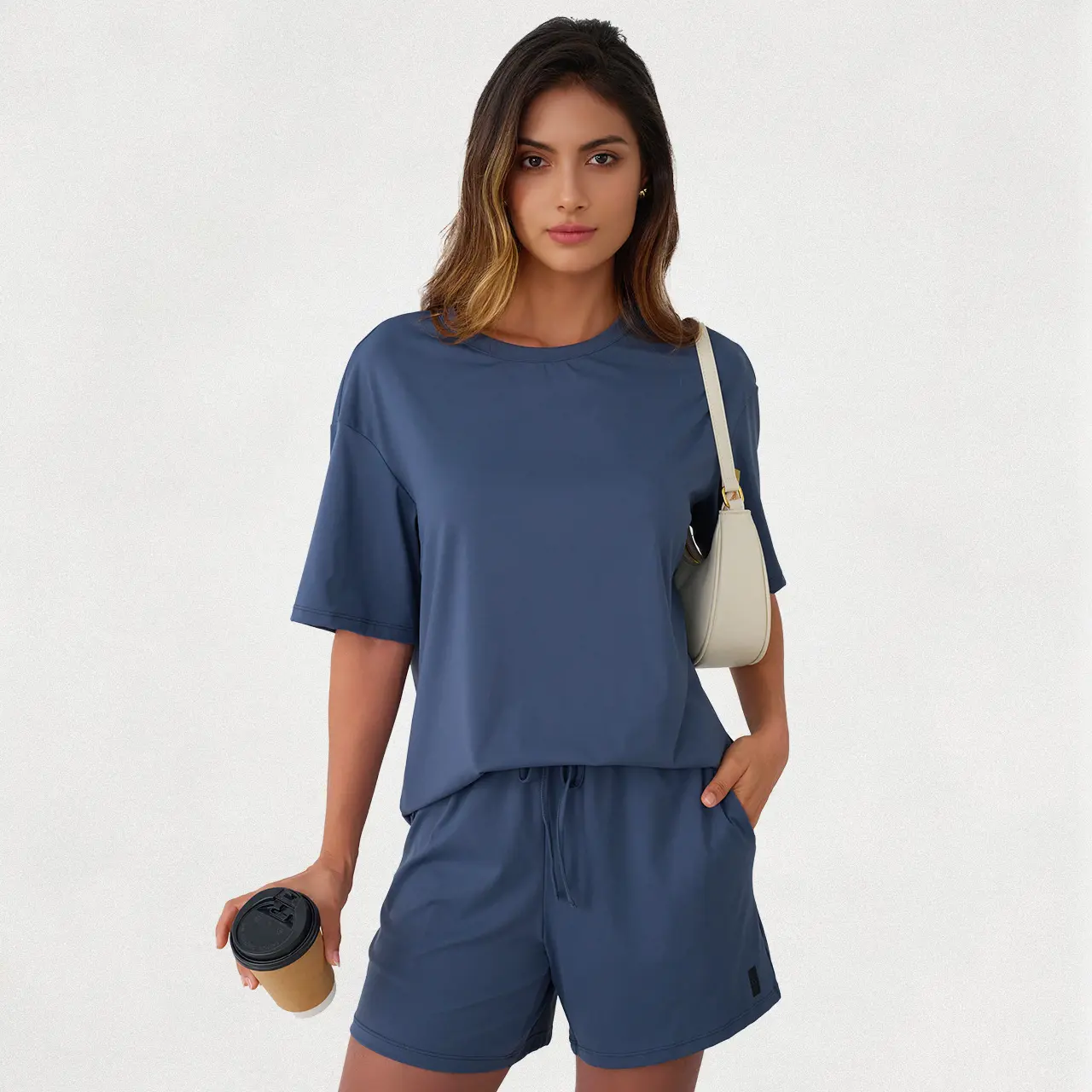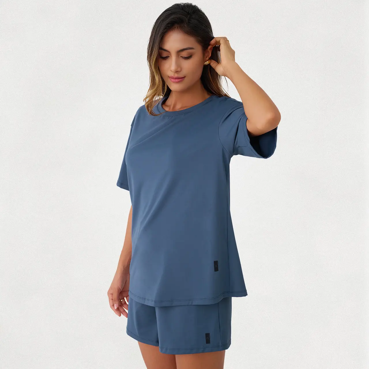 Klassy Pajama Shorts - Nightwear with Crew Neck, Versatile Womenswear