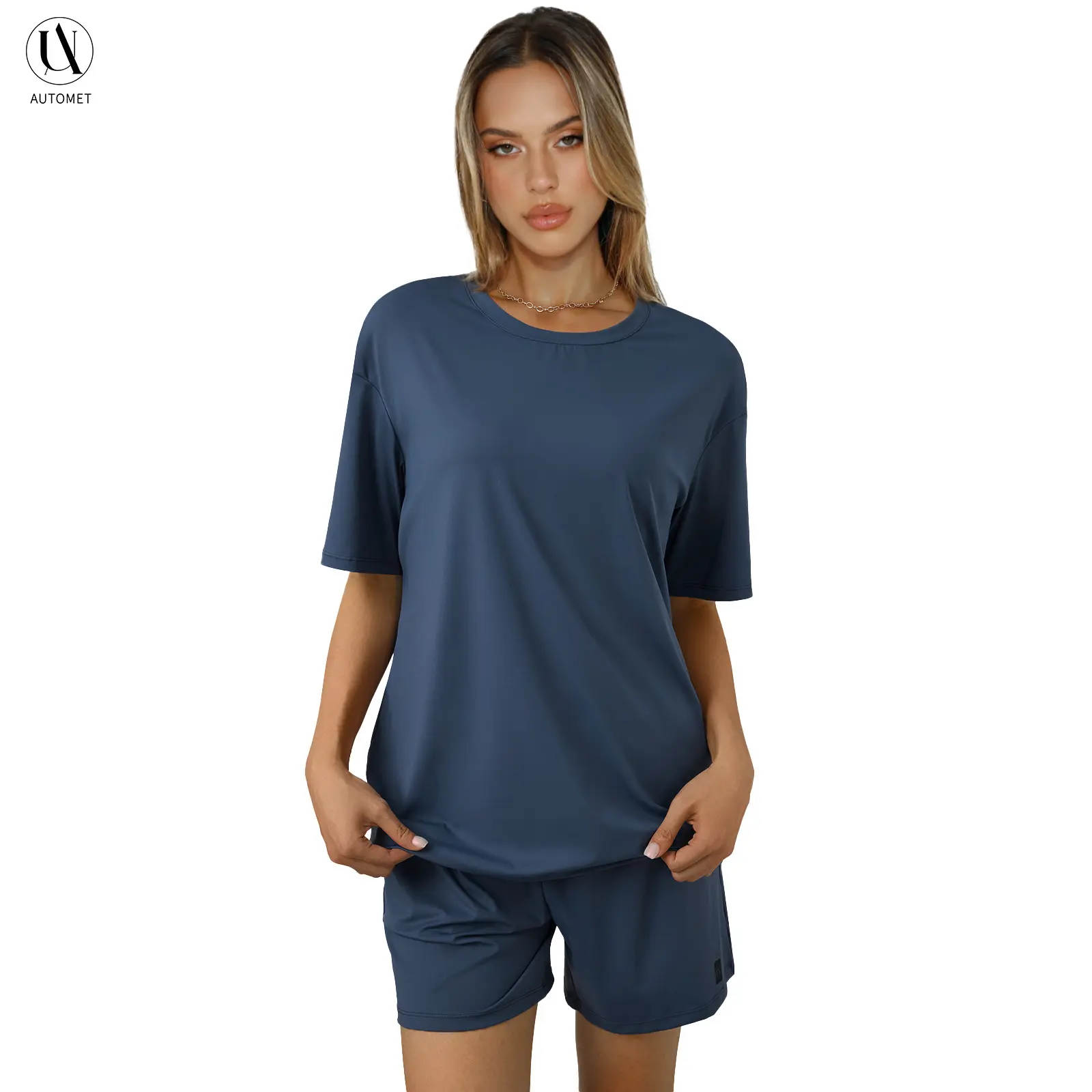 Automet Cloud Women's Two Piece Lounge Set 2025 Summer Casual  Shirts Biker Shorts Matching Airport Travel Outfit