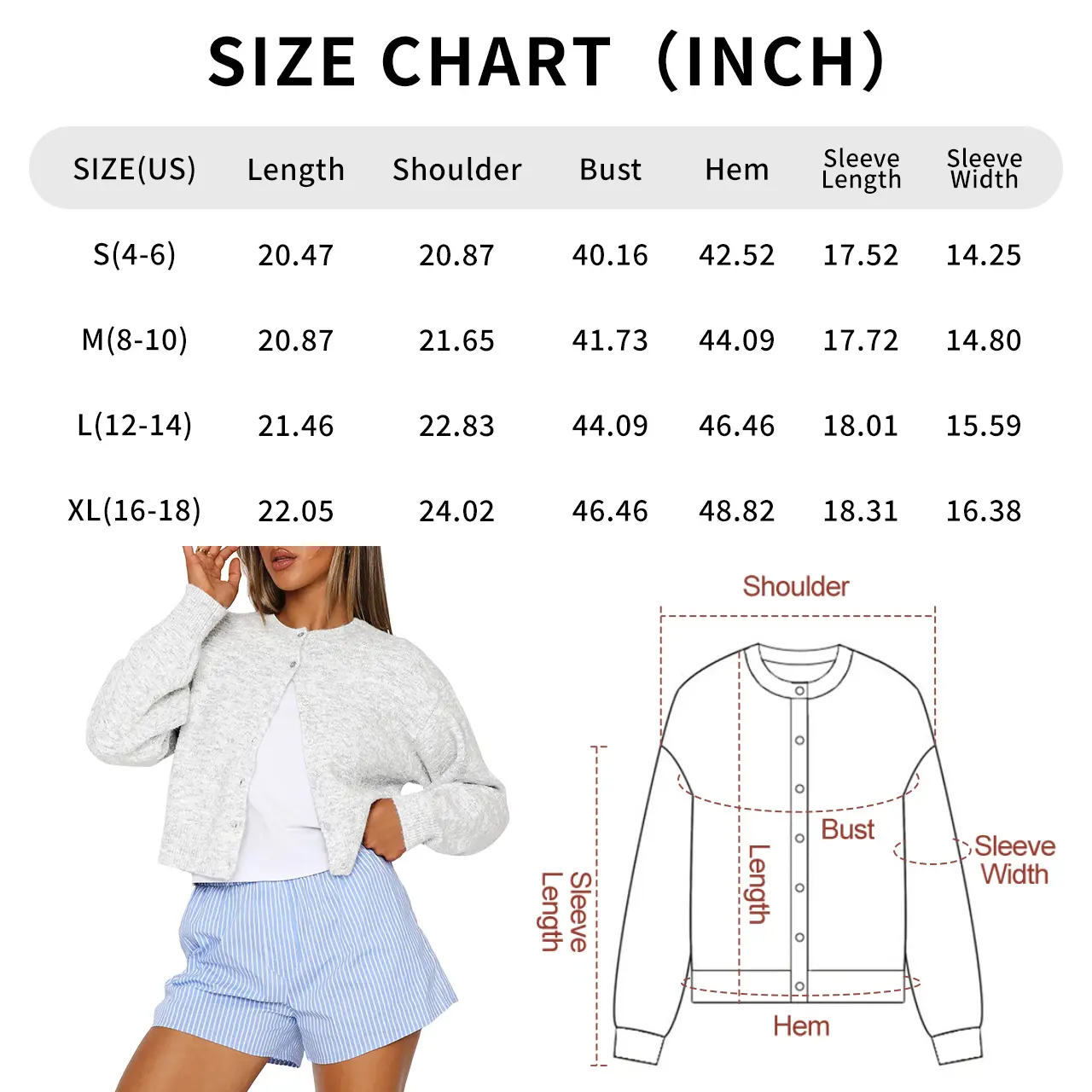·Product Image: The attached image shows the cardigan and matching shorts.