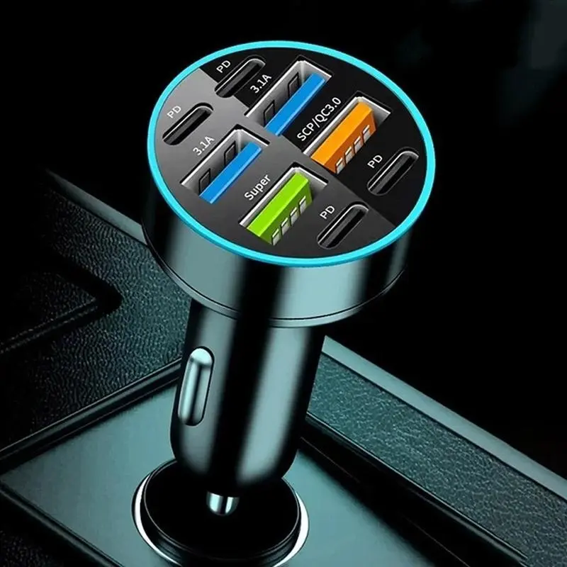 ·The luxurious configuration of 8 USB-C ports completely breaks the deadlock of insufficient charging ports in the car. Whether it is family, friends, or multiple devices of your own, they can all be used: mobile phones, tablets, laptops, smart watches, Bluetooth headsets, driving recorders... Charging at the same time does not interfere with each other. When traveling with family or friends, you no longer have to "compromise" on who charges first.