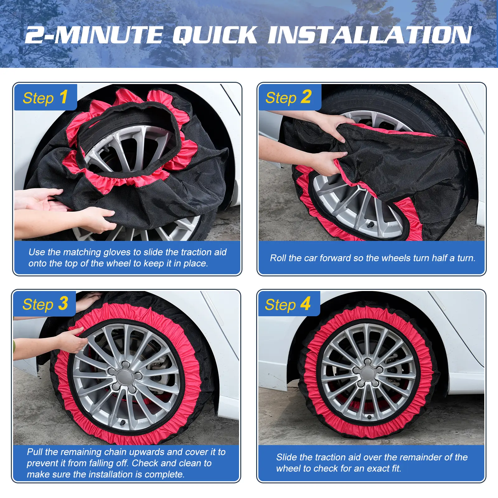 ·Enhanced Traction: Snow Socks for Tires provide superb traction on snow-covered roads, ensuring safe and confident driving in winter conditions. Say goodbye to slippery roads and enjoy improved handling and control