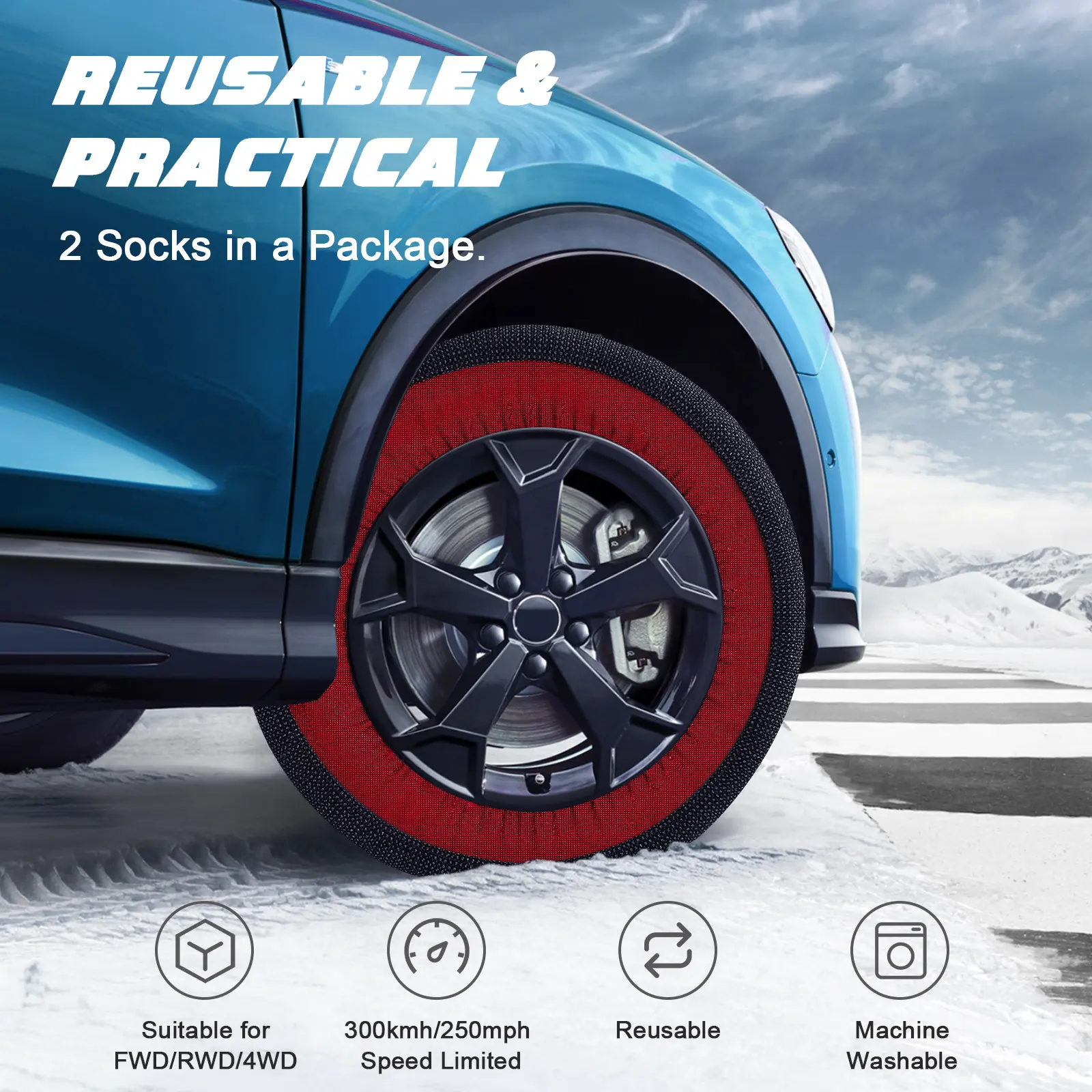 ·Washable and Reusable: Our tire snow socks are practical and sustainable, easy to clean and reuse, ensuring long-lasting performance. Compared to iron snow chains that are prone to rust, opting for our snow anti-slip socks is a cleaner and more convenient solution