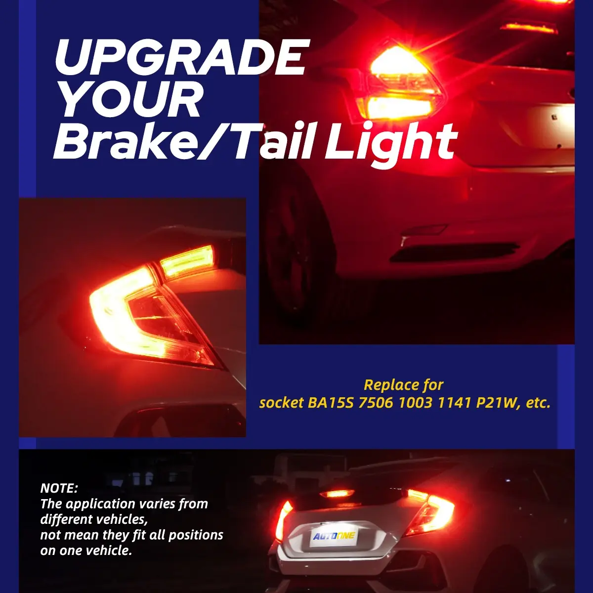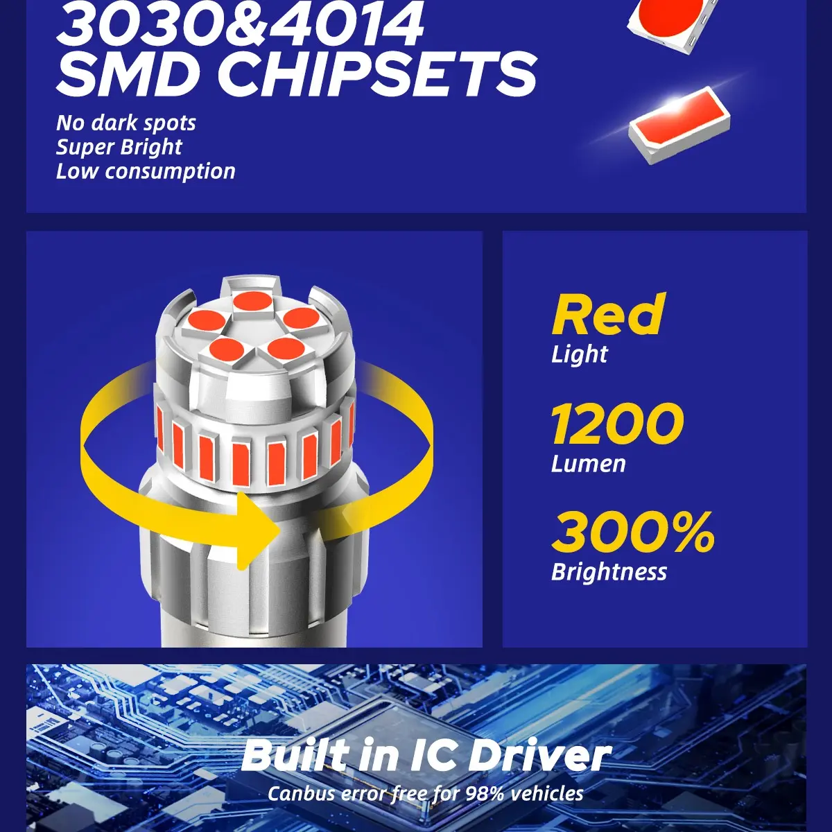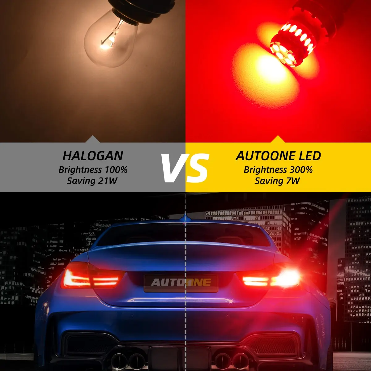 AUTOONE 1156 LED light bulbs use 3030SMD LED chips, offering 360° illumination. They generate 300% brighter output than halogen, ensuring sufficient brightness and distance. The warning effect is more obvious.