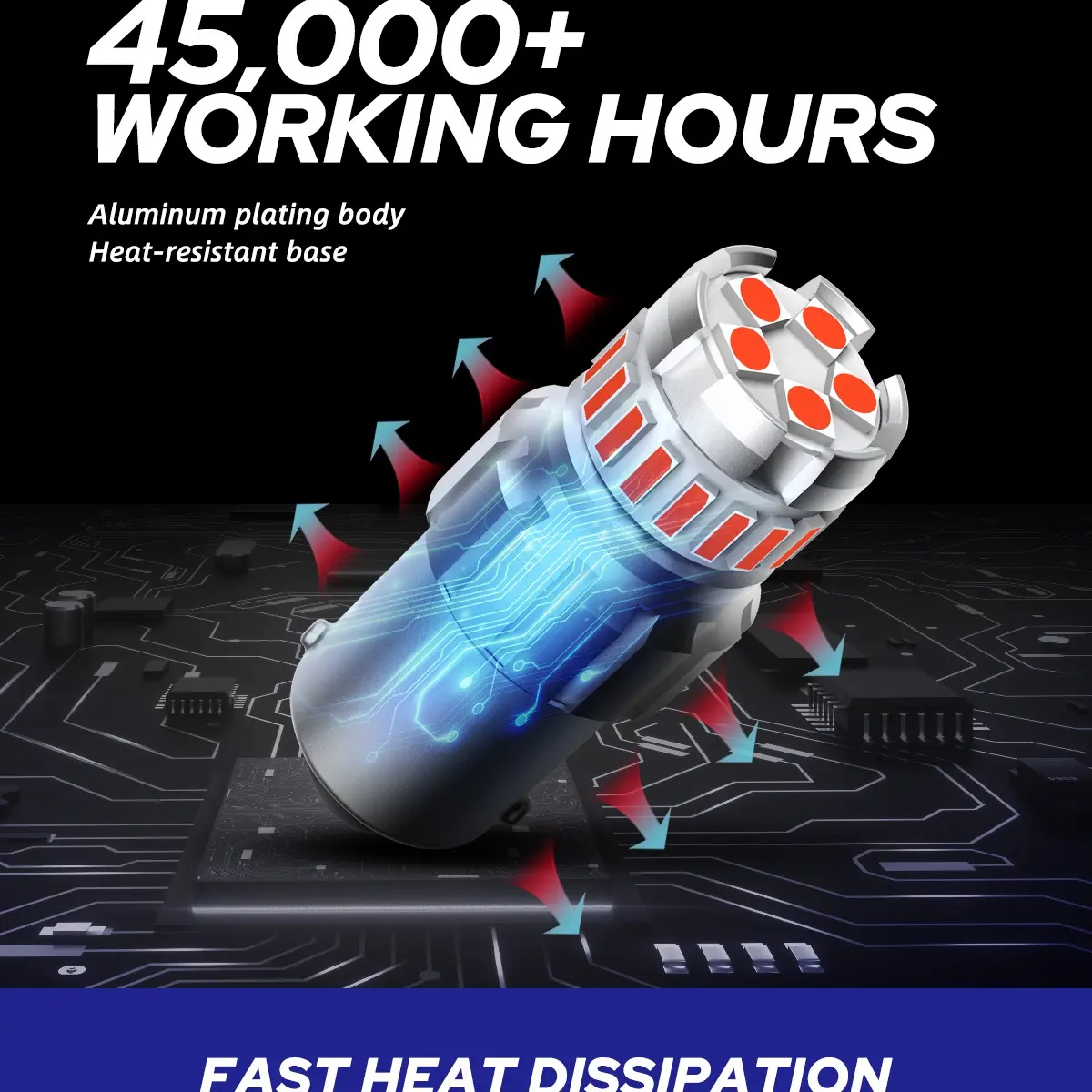 The aircraft-grade aluminum body and unique bump appearance design increase heat dissipation. AUTOONE 1156 LED bulbs have a lifespan of up to 45,000 hours.