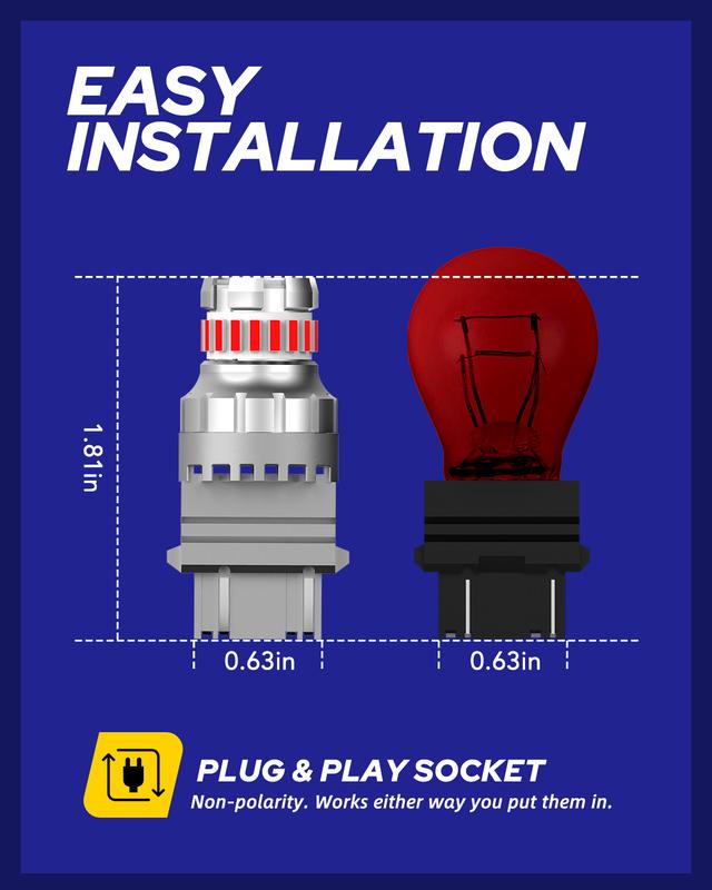 ·EASY INSTALLATION: Non-polarity, simply plug and play. Fit snugly to the original sockets. NOTE: Bulbs will strobe flash 3 times(Legal blinking times) at the beginning of the braking mode and then keep solid light. Easier notification and safer parking to avoid any automotive cars rear-end collision.