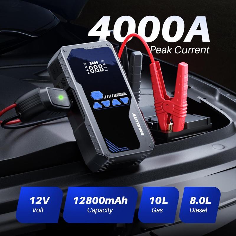 ·【All-in-One Utility Tool】This multifunctional device combines a portable powerful emergency booster car jumper starter, a high-efficiency air compressor, a bright 400-lumen LED flashlight, and a high-capacity 12,800mAh emergency power bank. With USB and Type-C ports for versatile charging options, it’s your ultimate companion for emergencies, road trips, and everyday adventures. This jumper box for car battery portable is designed to meet all your needs.