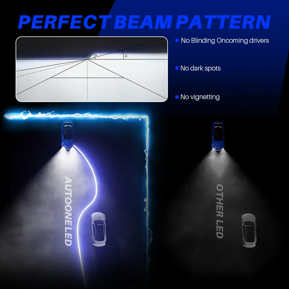 With low energy consumption and a well-designed beam pattern, the AUTOONE LED bulb provides consistent lighting with no dark spots. It ensures clear visibility without affecting the vision of oncoming drivers.