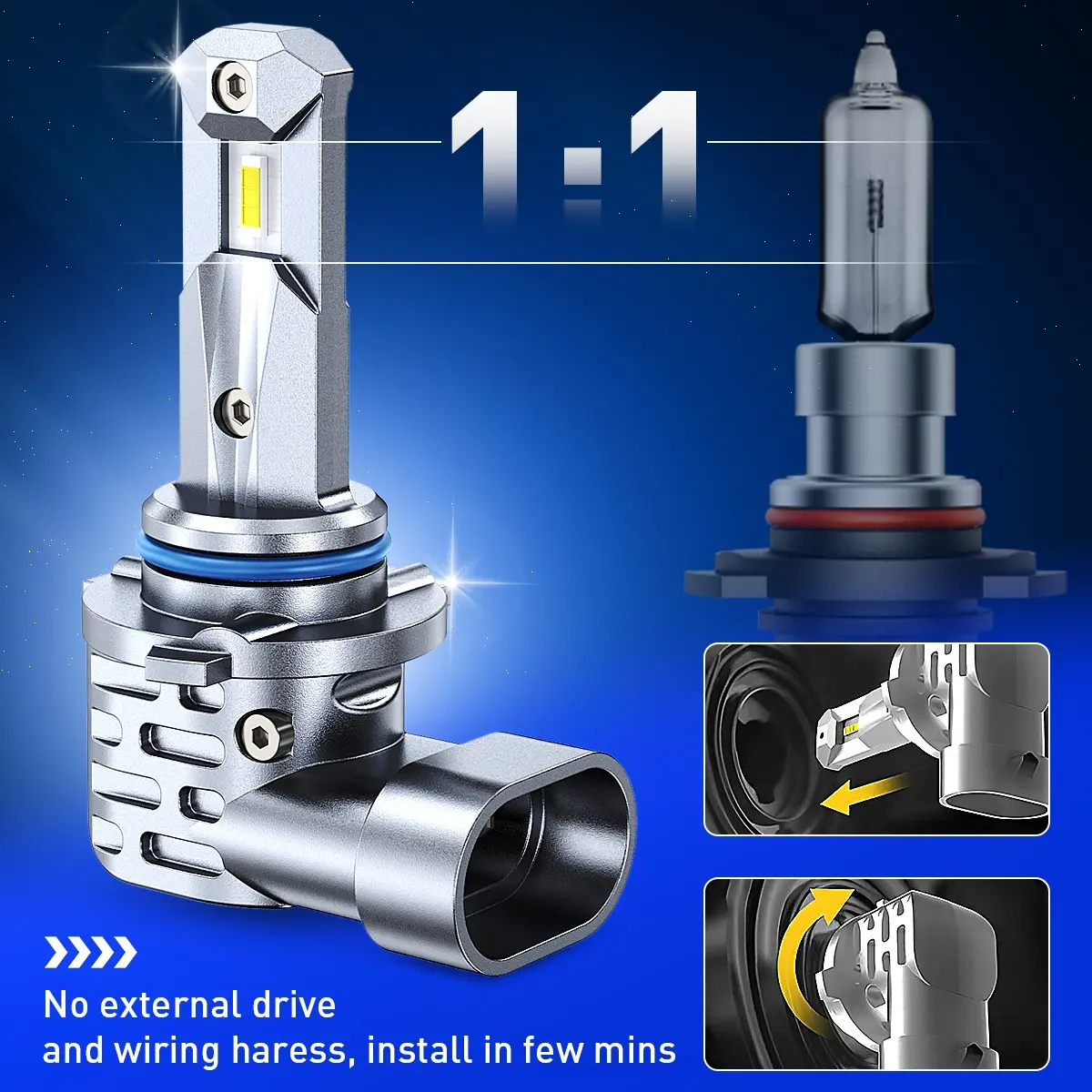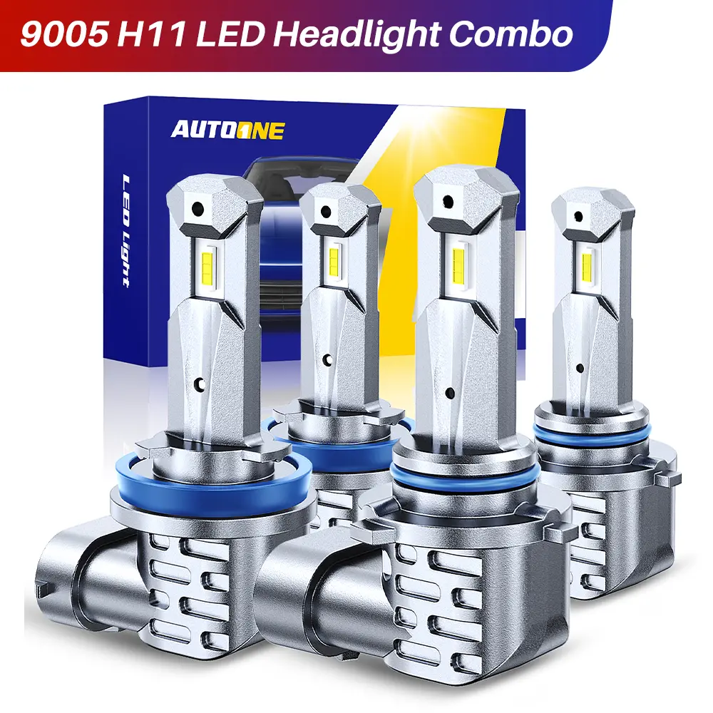 AUTOONE H11/H9/H8 9005/HB3 LED Bulbs Combo 6000K White, H11 9005 LED Lights Fog Lights Canbus, Fanless Mini Size Plug and Play, Pack of 4
