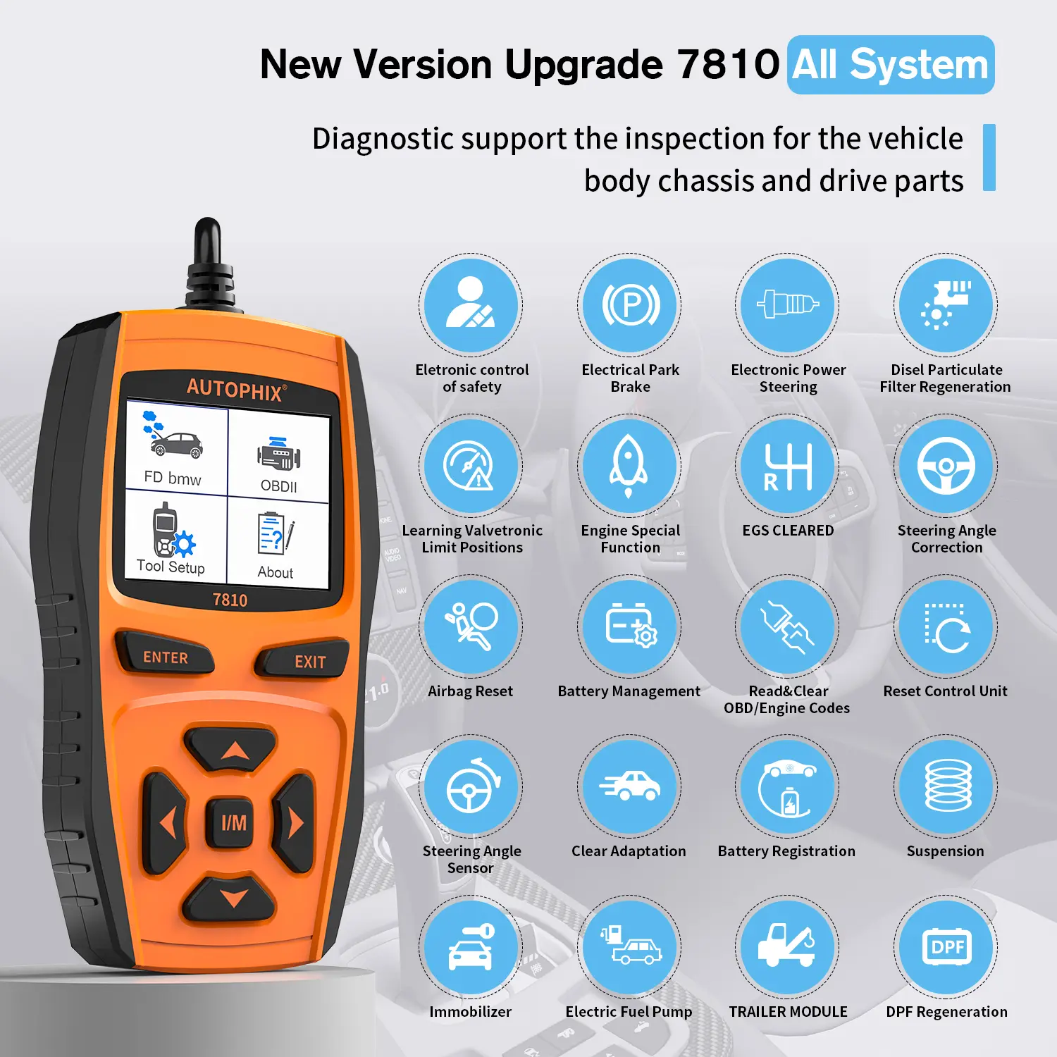 Other features: AUTOPHIX 7810 supports the latest protocols, has the latest fault code library built-in, and can retrieve more data. Quickly inspect engines, ABS, airbags, automatic transmissions, instrumentation and other control systems.