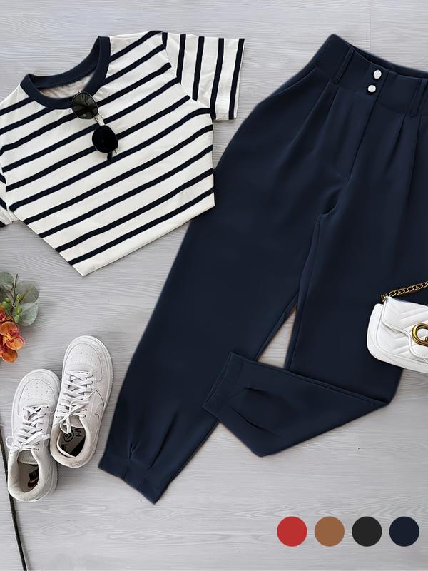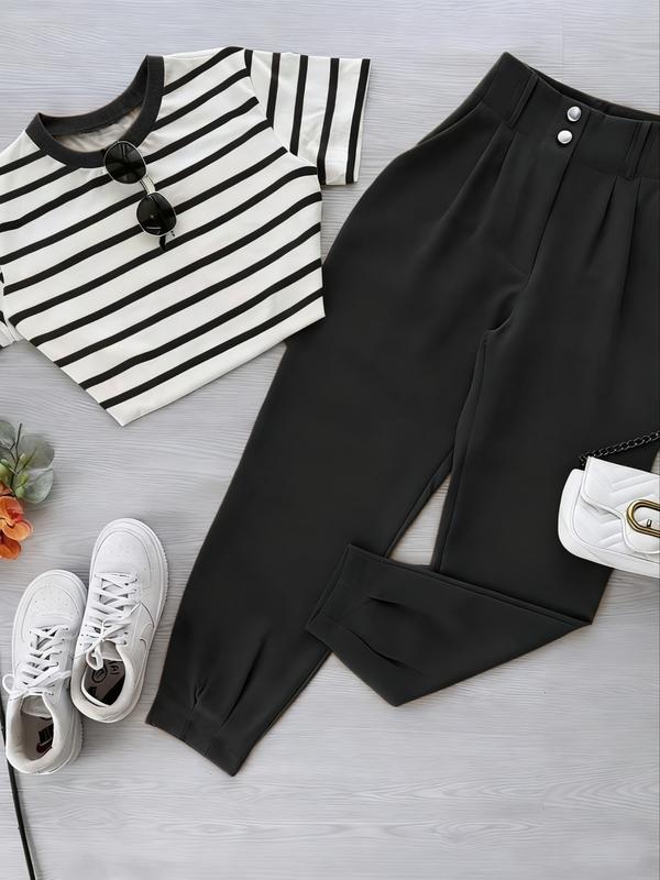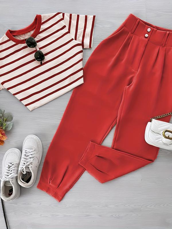 【Unique Pattern】: Features a bold striped pattern, distinguishing this two-piece set from typical solid-colored outfits.