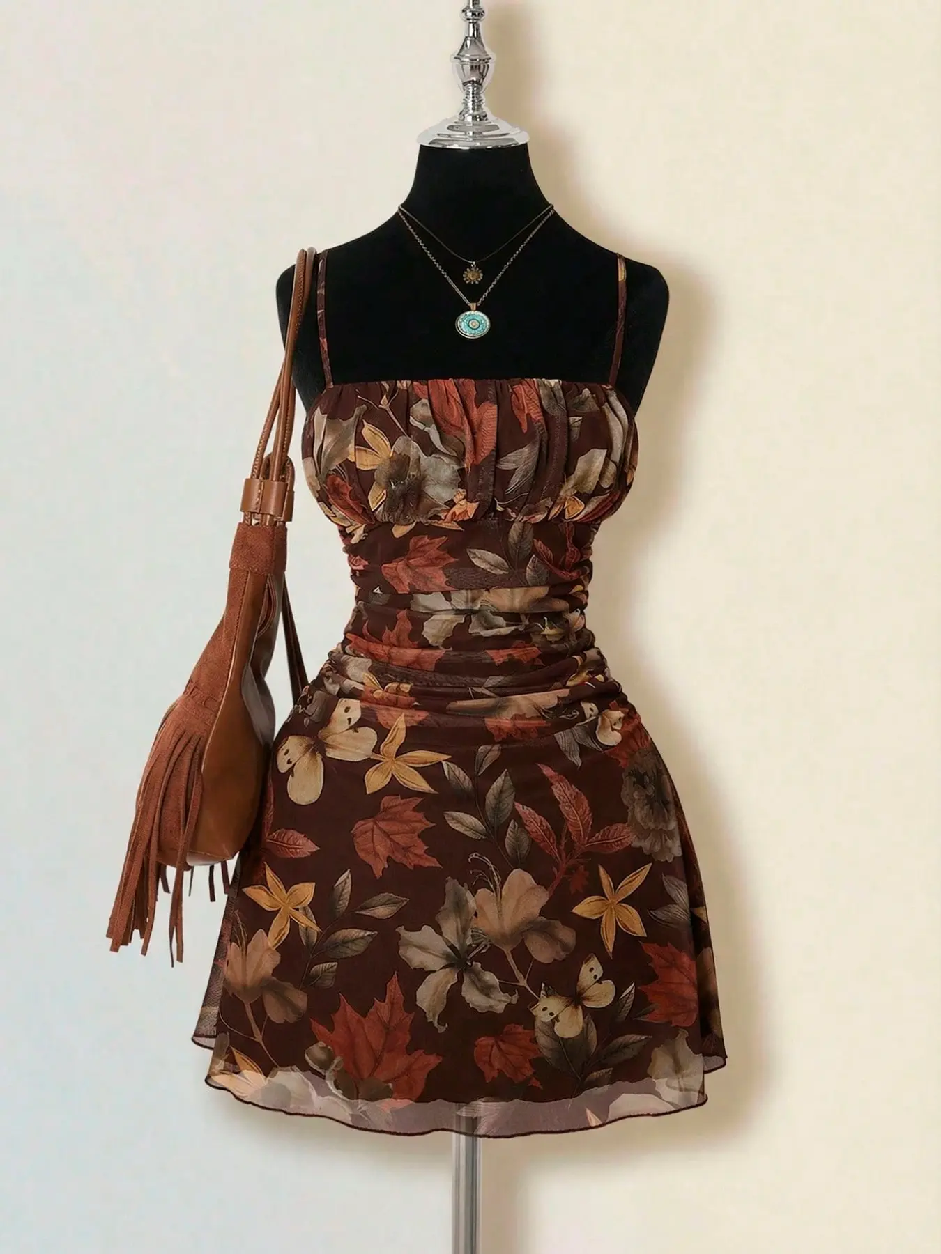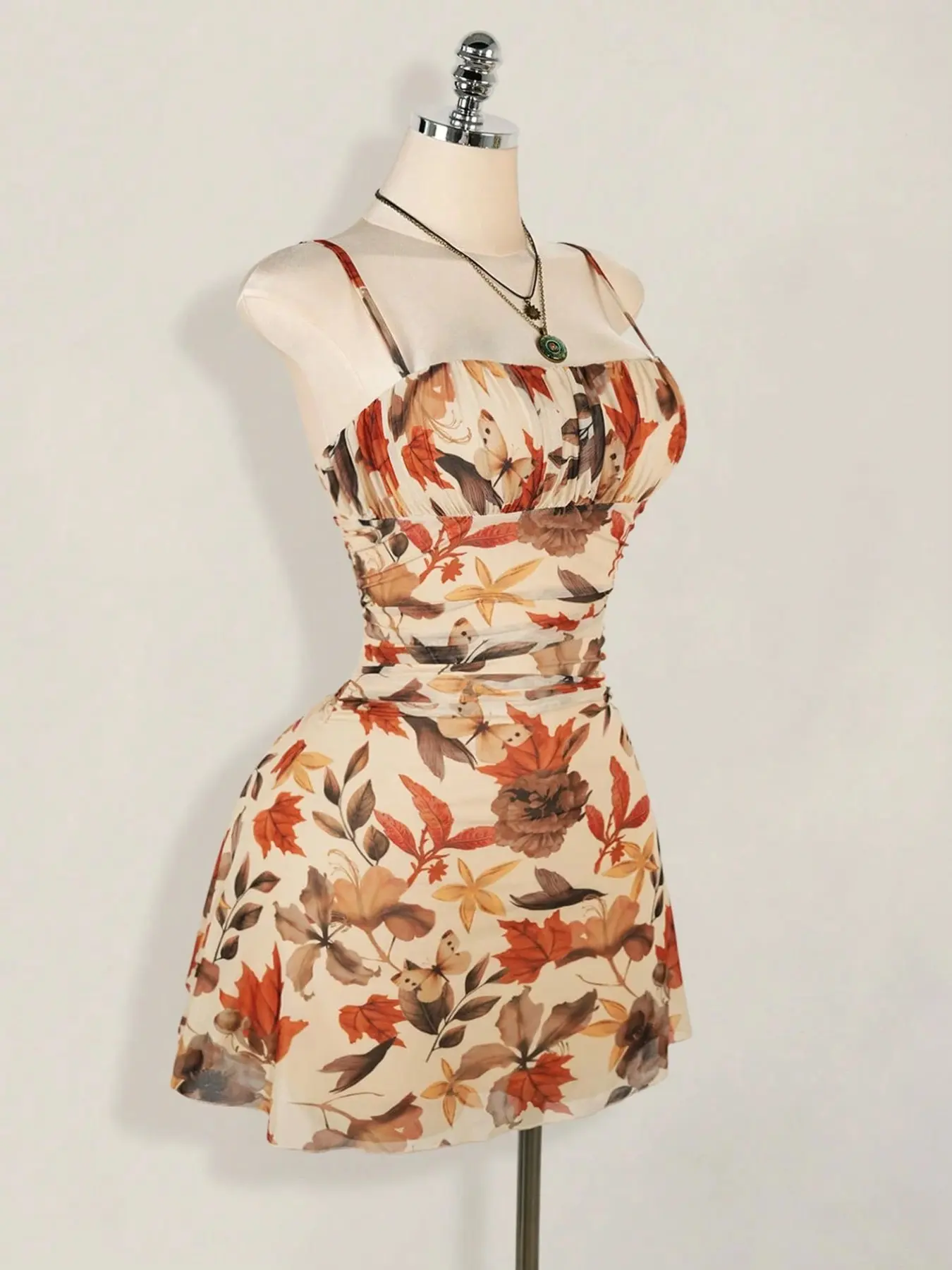 Autumn Leaf Waist-Cinched Dress, Euro-American Casual Style, Spaghetti Strap Design, Breathable Fabric, Perfect for Fall #shapeweardress #womensdress #modestdresses #fallfashionfinds #bumpfriendlydress #womendresses #summerdressfind #swimsuitdress #bloomchicdress #maternityphotoshootdress