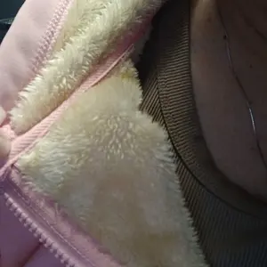 the material inside is very soft and warm. the color does not look like the photo, i bought this expecting a warm but light pink , i got a salmon pink but besides everything it’s a pretty good sweatshirt
