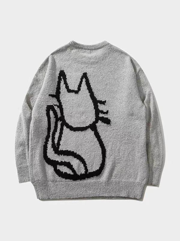 Autumn Winter New Cartoon Cat Pattern Long Sleeve Sweater Women's Small Design Retro Loose Knitted Shirt Lazy Style Round Neck Top
