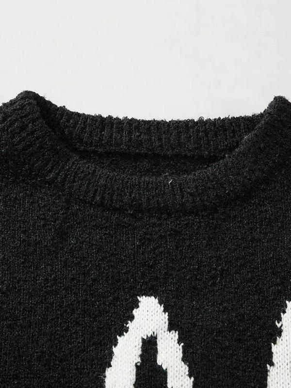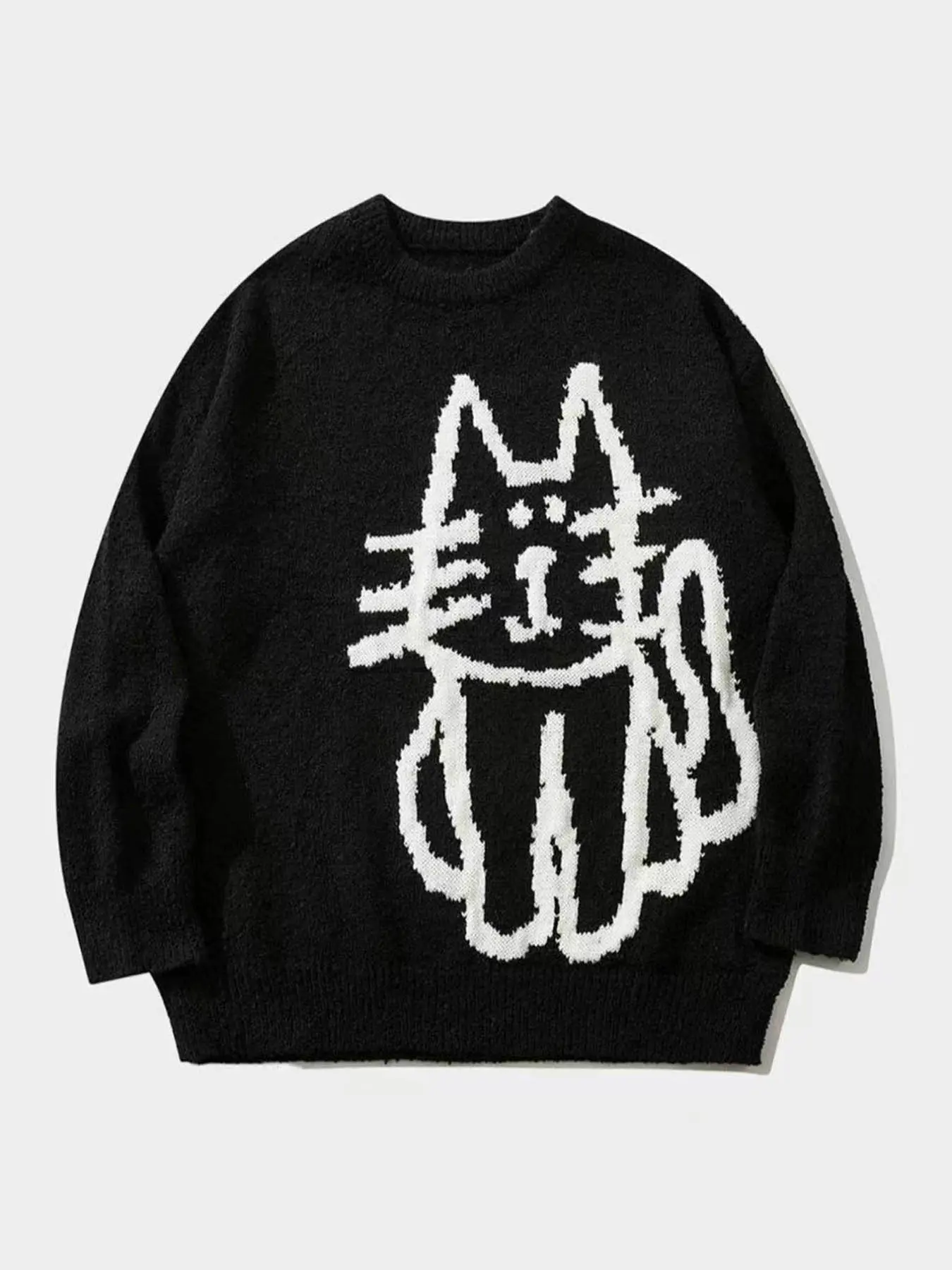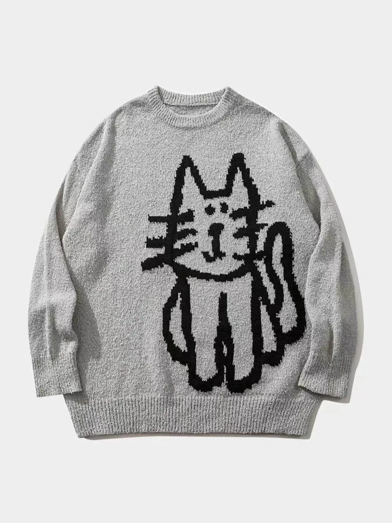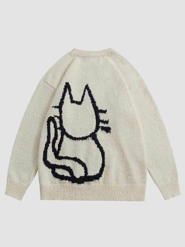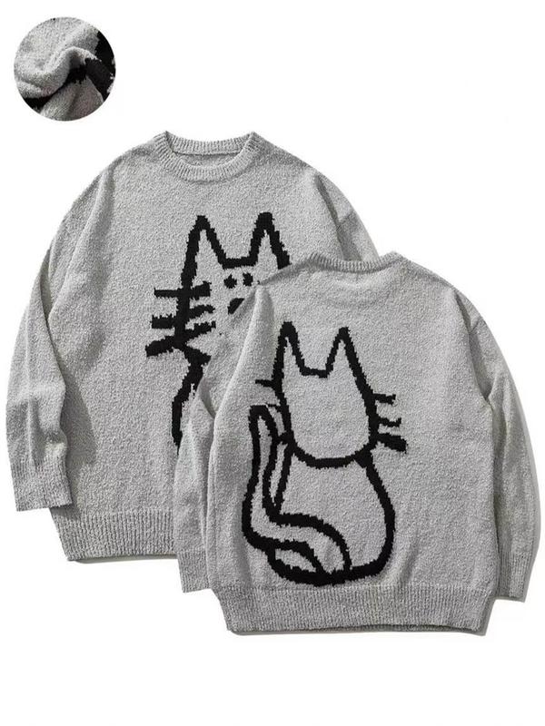 Women's Autumn Winter Cartoon Cat Pattern Long Sleeve Sweater, Retro Loose Knitted Shirt, Lazy Style Round Neck Top #oversizedsweatshirt #sweaterset #womenssweatshirtset #womenssweats #fashionablewomensclothing #knittedsweaters #plussizesweaters #plussizesweater #offtheshouldersweater #sweatershirt
