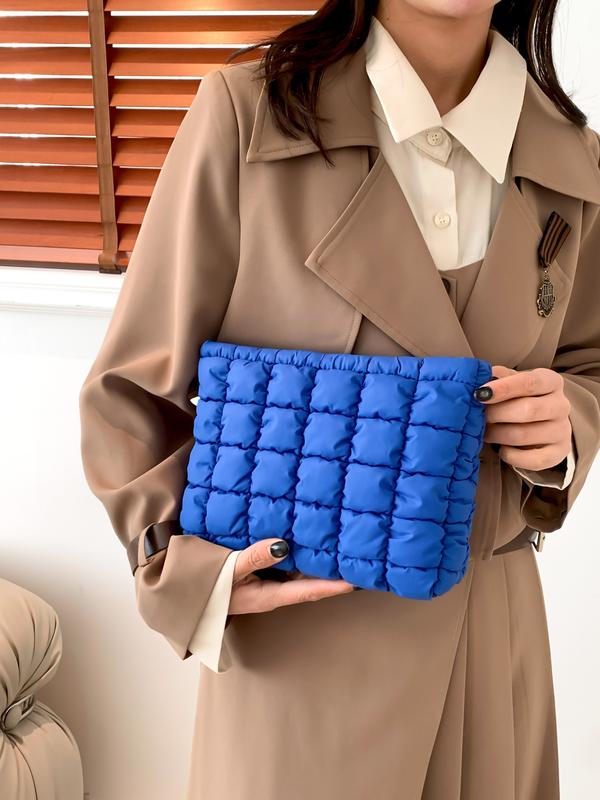 Autumn Winter New Solid Color Quilted Handbag, Large Capacity Travel Storage Bag, Zipper Design, Women's Portable Travel Organizer, Holiday Gift, Durable Pouch