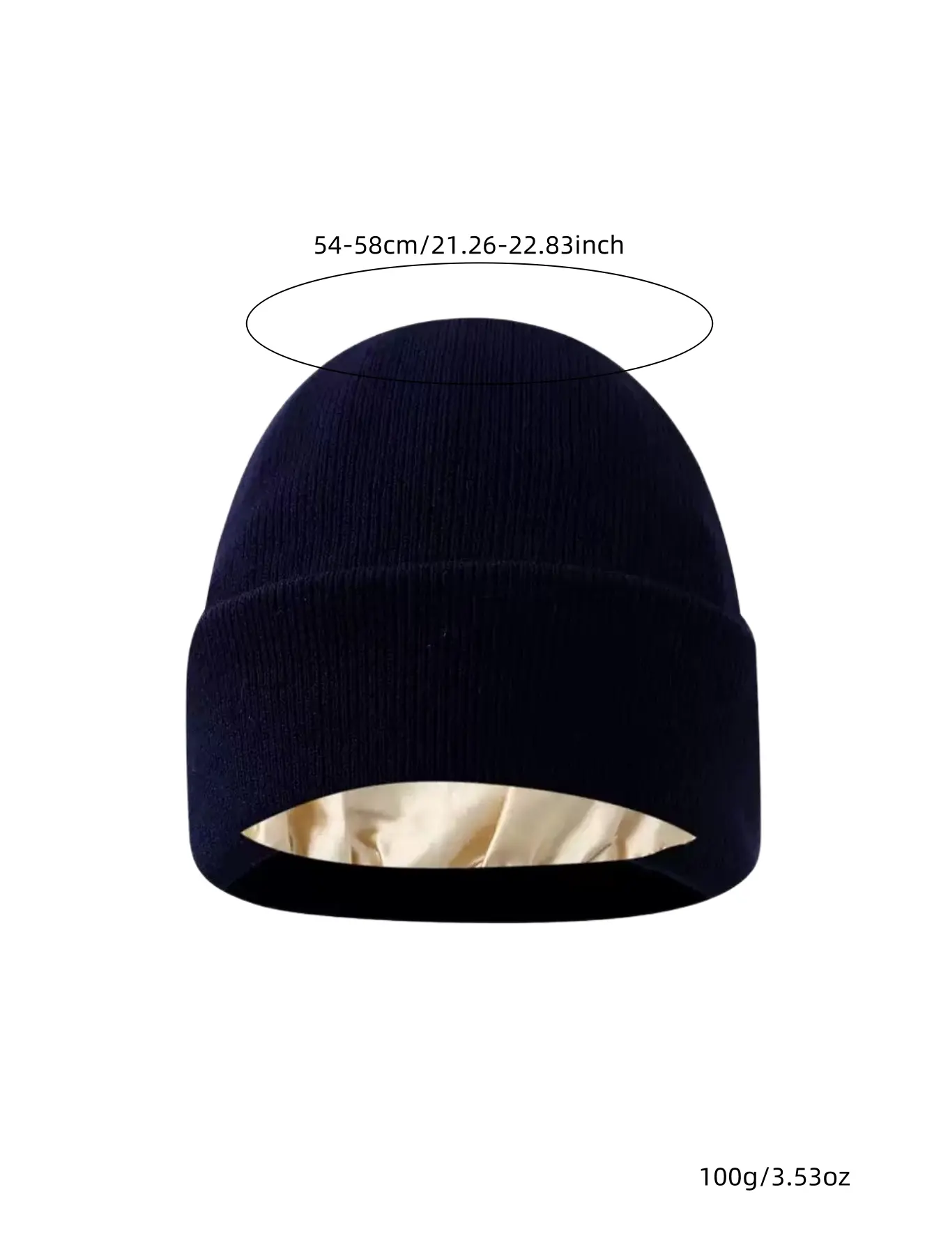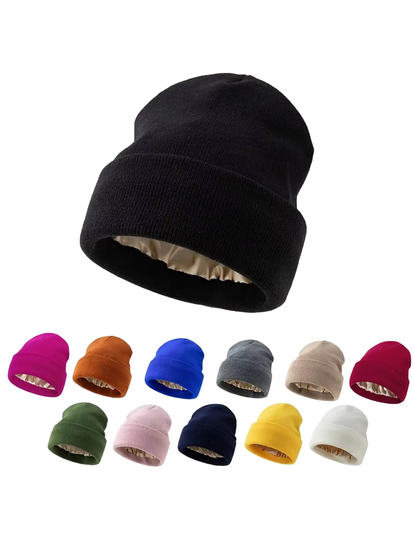 Autumn Winter Satin Knit Hat, Large Head Circumference Warm Beanie, Solid Color Cold Cap, Unisex for Kids over 13 Years, Outdoor Sports #sweatabsorbingcap #menshats #fashionwinterhat #winterhats #heatedbeanie #carhartbeanie #embroideredhats #satinbonnetbenefits #hatsforher #2in1hairnetscarf