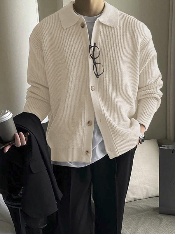 5. Autumn Winter Thick Knit Sweater Coat, Casual Unisex Cardigan, Lapel Long Sleeve Polo Shirt, Moderate Fabric, Fitted Style