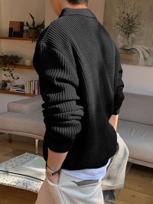 Autumn Winter Thick Knit Sweater Coat, Casual Unisex Cardigan, Lapel Long Sleeve Polo Shirt, Moderate Fabric, Fitted Style