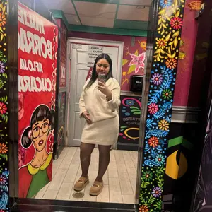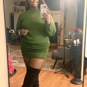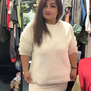 It’s arrived quick material is light weight I found it a bit itchy. It’s cute I didn’t like how the skirt looks, skirt fits loose so I added a belt to give a touch but I see myself only wearing the sweater. I bought Medium , I’m 125 LB , 5 Ft .