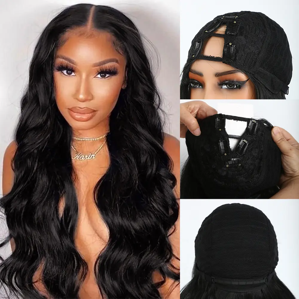 ·V Part Body Wave: No sew in, no glue, no leave out.