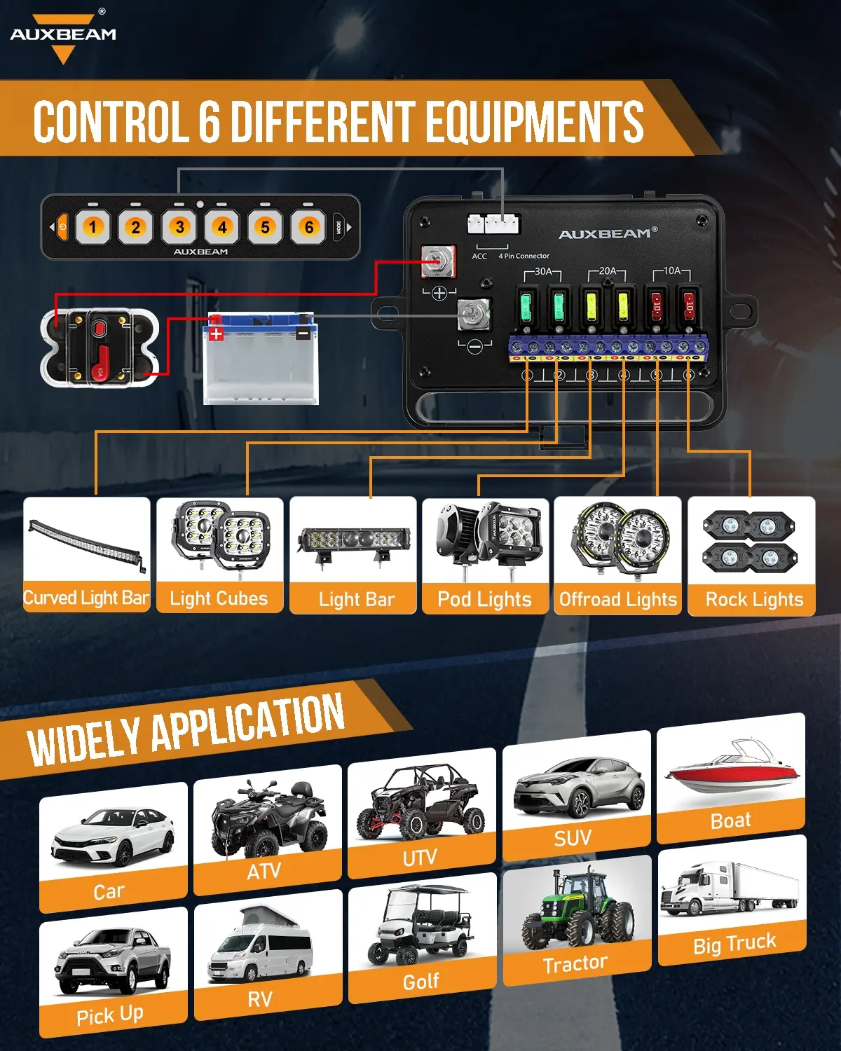 Auxbeam AS Series 6 Gang Slim Switch Panel | AS-R60 Car Switch Control