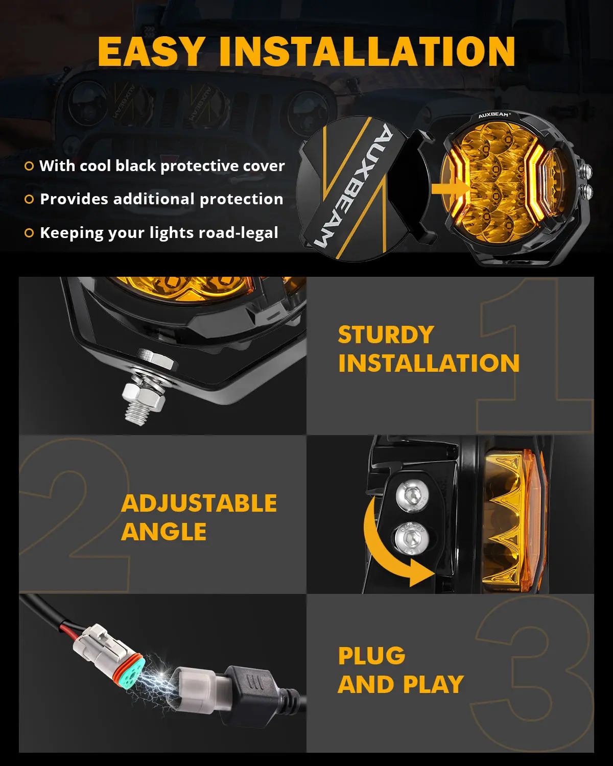 ·Amber DRL: Unique design with amber light for alerting other drivers in foggy or rainy conditions.