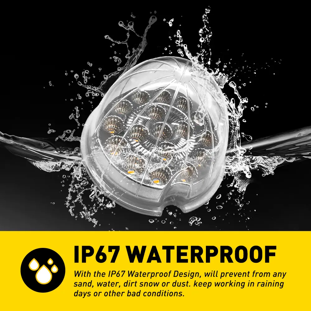 The waterproof design supports the light work even under extreme conditions, especially on rainy or foggy days (IP67).