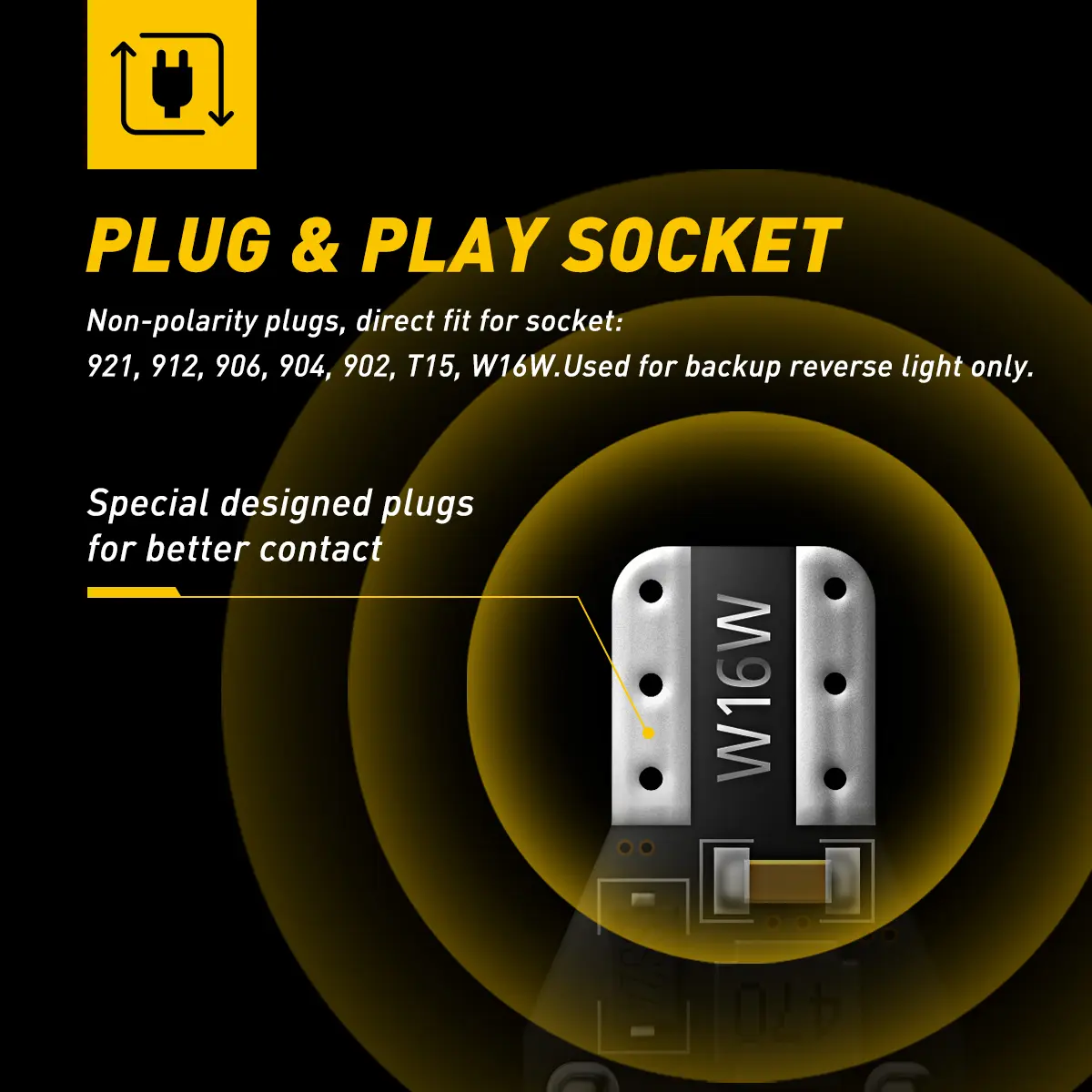 ·[Suit for Socket: T15, 912, 921, 906, 904, 902, 922, W16W, just plug and play without modification. ONLY used for backup reverse lights daytime running light
