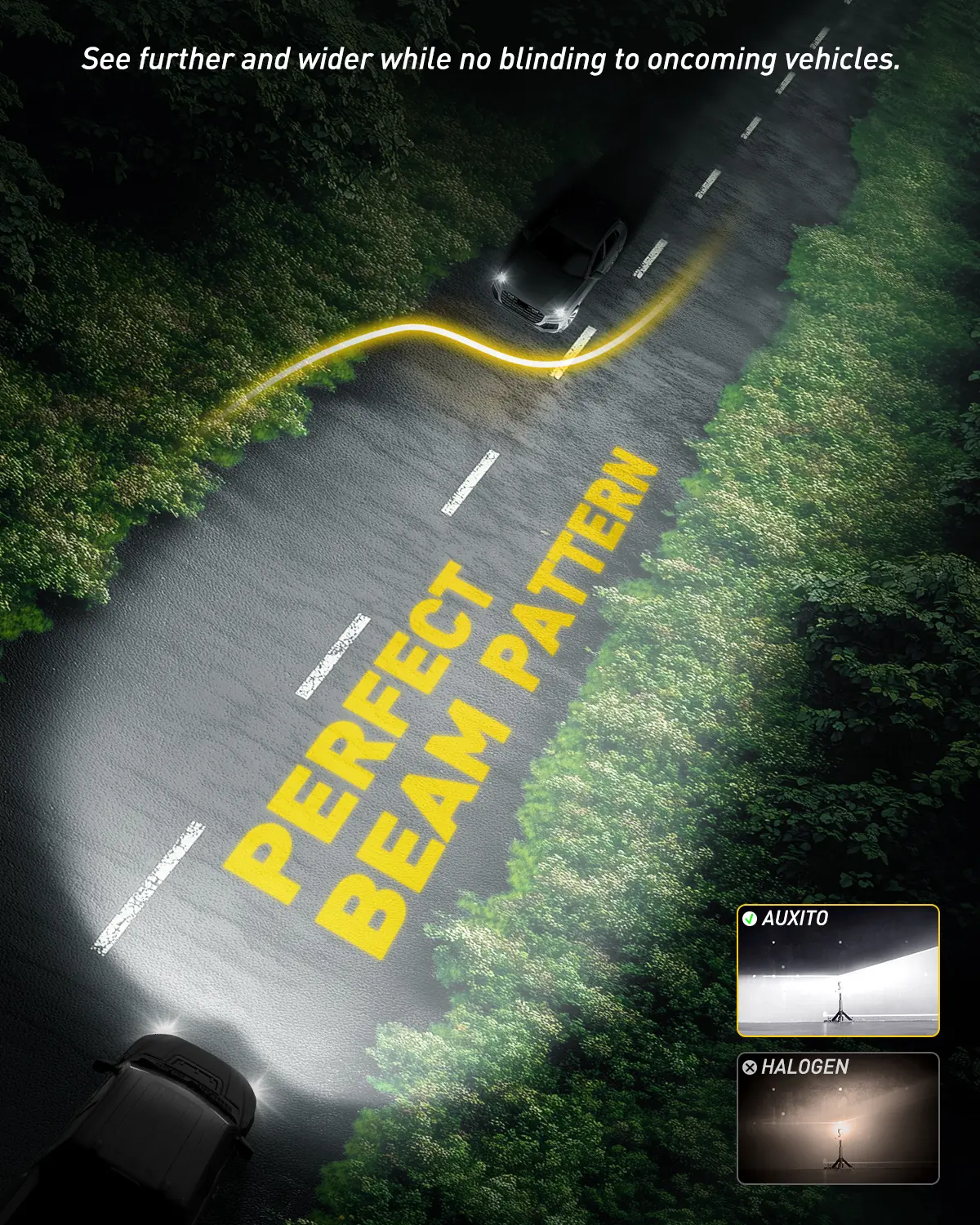 ·【Lighting anti-glare design】: AUXITO's headlights have anti-glare function and will not cause light trouble to oncoming vehicles. AUXITO protects the sight of drivers of oncoming vehicles while ensuring higher brightness and wider field of view, thereby improving overall road safety.