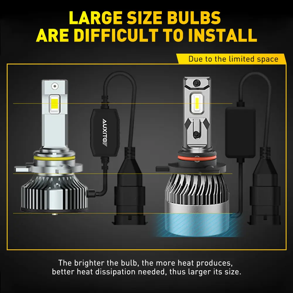 ·【Longevity Beyond 60,000 Hours】Wave goodbye to overheating woes. The AUXITO bulbs feature a full aluminum body, a high-speed cooling fan, and a copper base board. This synergistic combination effectively curtails overheating, prolonging the bulb's lifespan to over 60,000 hours. This means consistent and reliable brightness without the risk of premature burnout