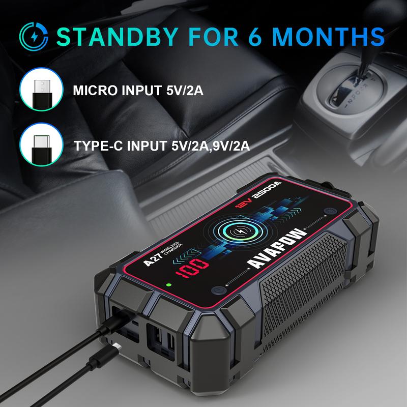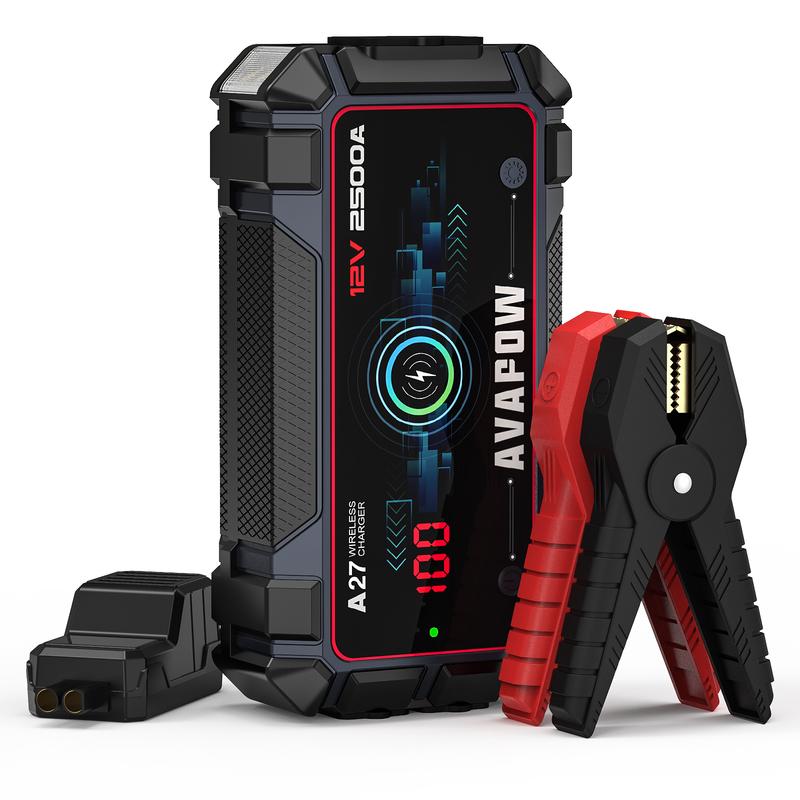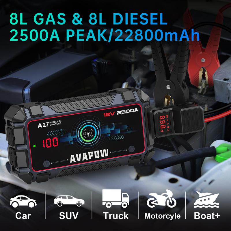 ·WIRELESS CHARGING STATION DESIGN - The AVAPOW A27 jump starter also features a wireless charging station design that can deliver up to 5W/7.5W/10W MAX of power. This feature makes your life more convenient.