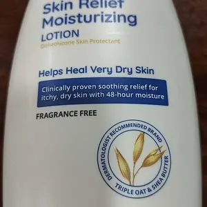 Aveeno Skin Relief Fragrance-Free Moisturizing Body Lotion is a rich, yet fast-absorbing lotion that helps heal and relieve very dry skin. This dimethicone skin protectant features a soothing Triple Oat complex and hydrating natural shea butter formula which includes oat flour, oat extract and oat oil that provides soothing relief for itchy, dry skin and locks in long-lasting moisture.