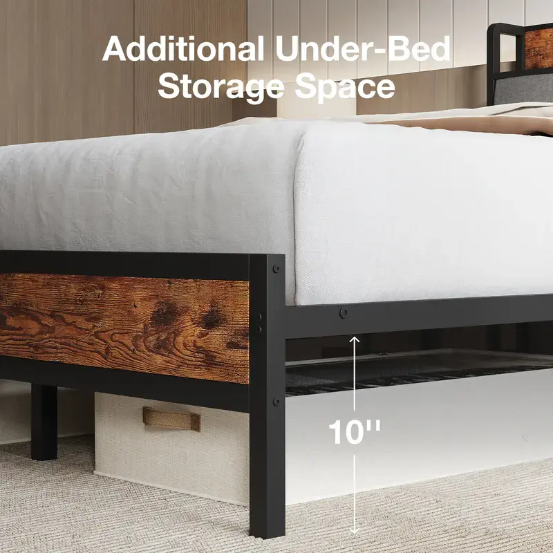·Our platform bed frame boasts 13 heavy-duty metal slats, 9 robust support legs, and a central reinforcement bar. It ensures exceptional stability and support. With a weight capacity of up to 1200 lbs, it is built to last.