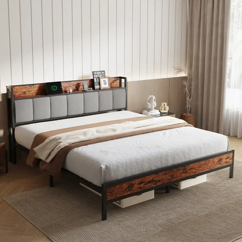 🛏️ Bed Frame with Charging Station & Storage