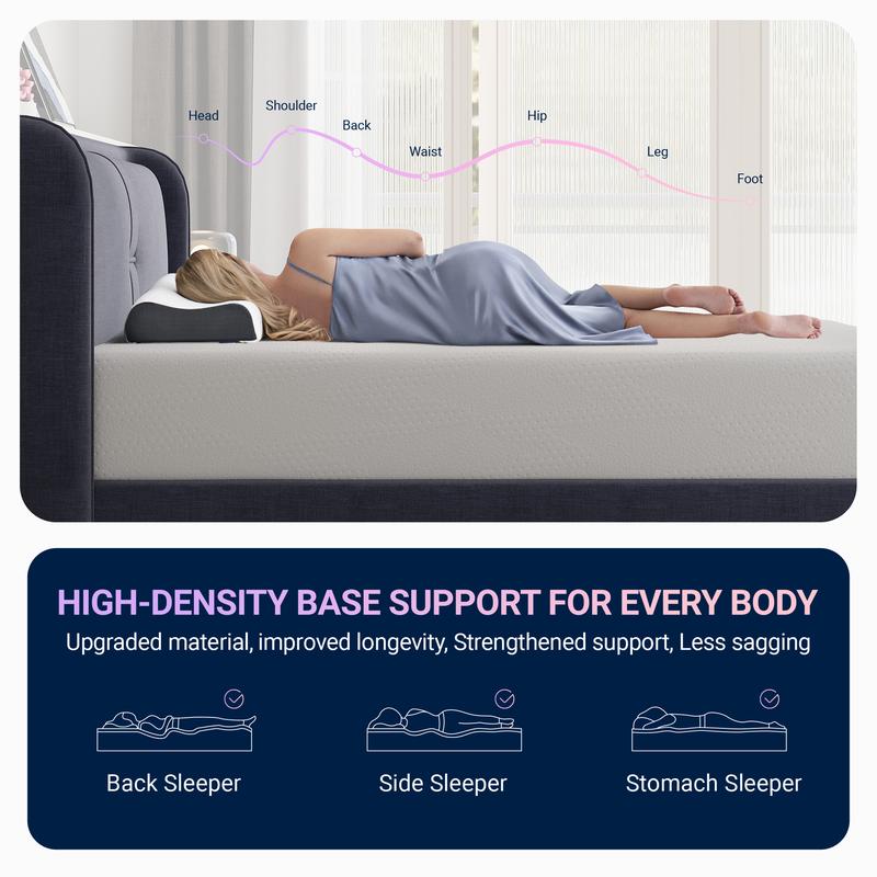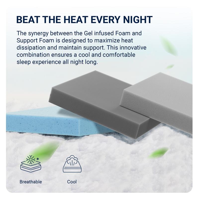 ·Motion Isolation Support: The queen size mattress features a 3-layer foam structure that absorbs noise and movement, preventing sleep disruptions. Enjoy balanced support and spinal alignment thanks to the high-density gel memory foam mattresses