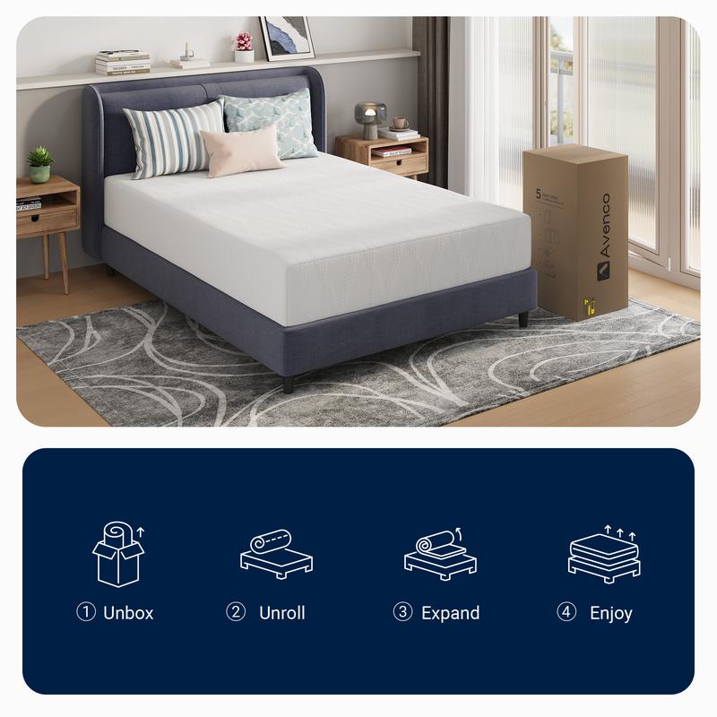·Gel Memory Foam: This queen mattress is infused with 30% NanoGel, enhancing heat absorption and airflow for a refreshing cool sleep experience. Avenco gel memory foam mattress ensures all-night comfort, eliminating hot and restless nights