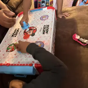 My son loves it. He was so excited when he seen Mickey Mouse. Now he won’t stop playing with the air hockey.
